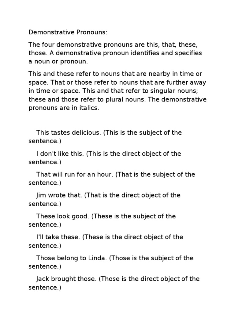 Demonstrative Interrogative Relative And Indefinite Pronouns Demonstrative Pronouns